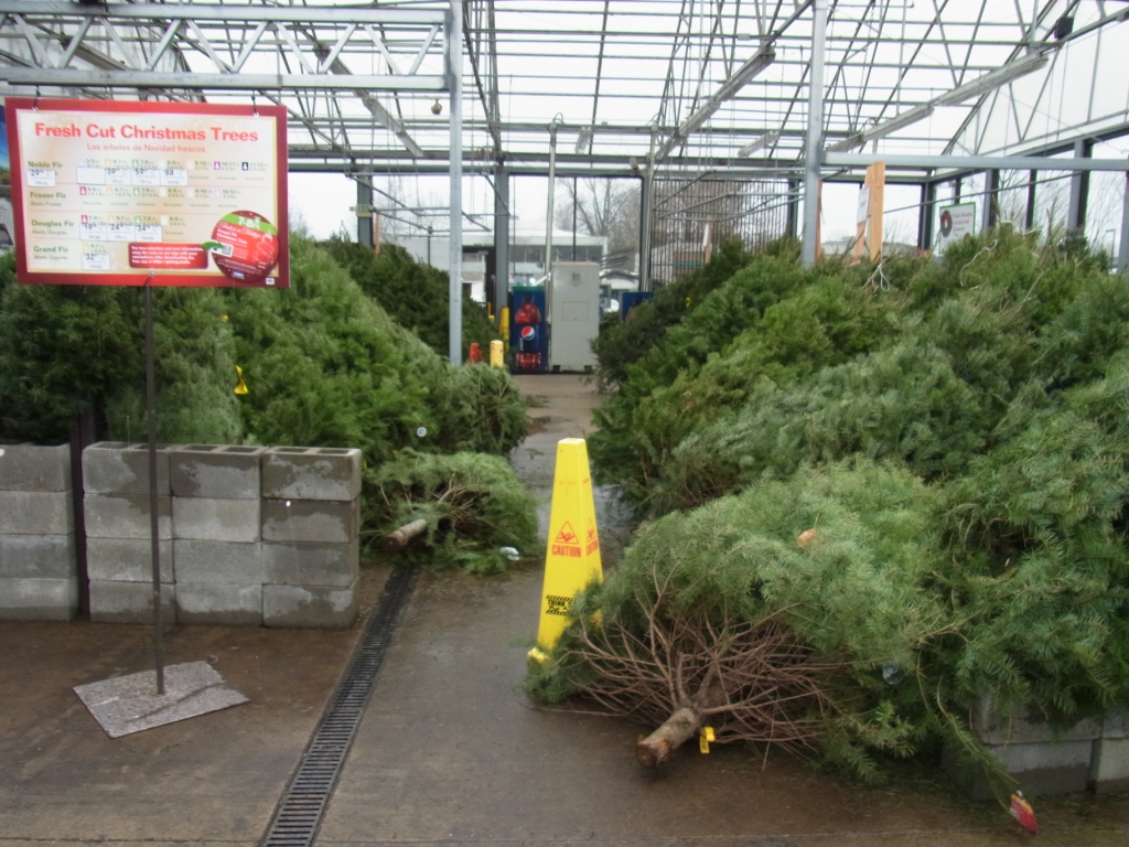 クリスマスの後に園芸コーナーを見てみたら、売れ残りの生のクリスマスツリーがいっぱい残ってました・・・。