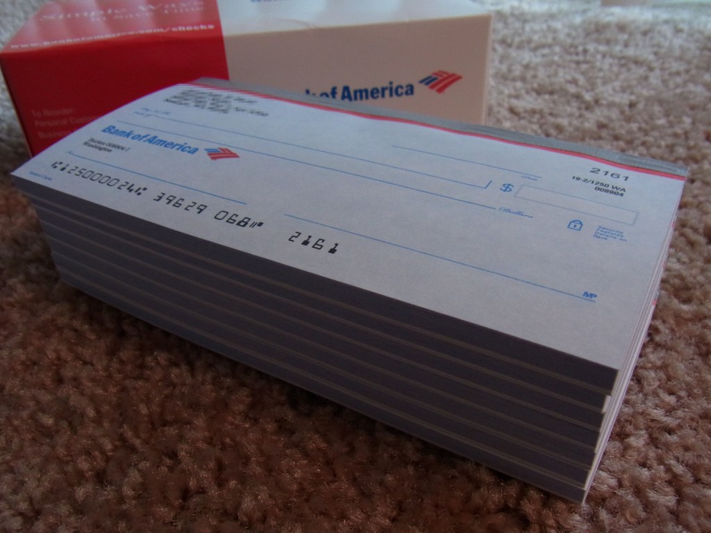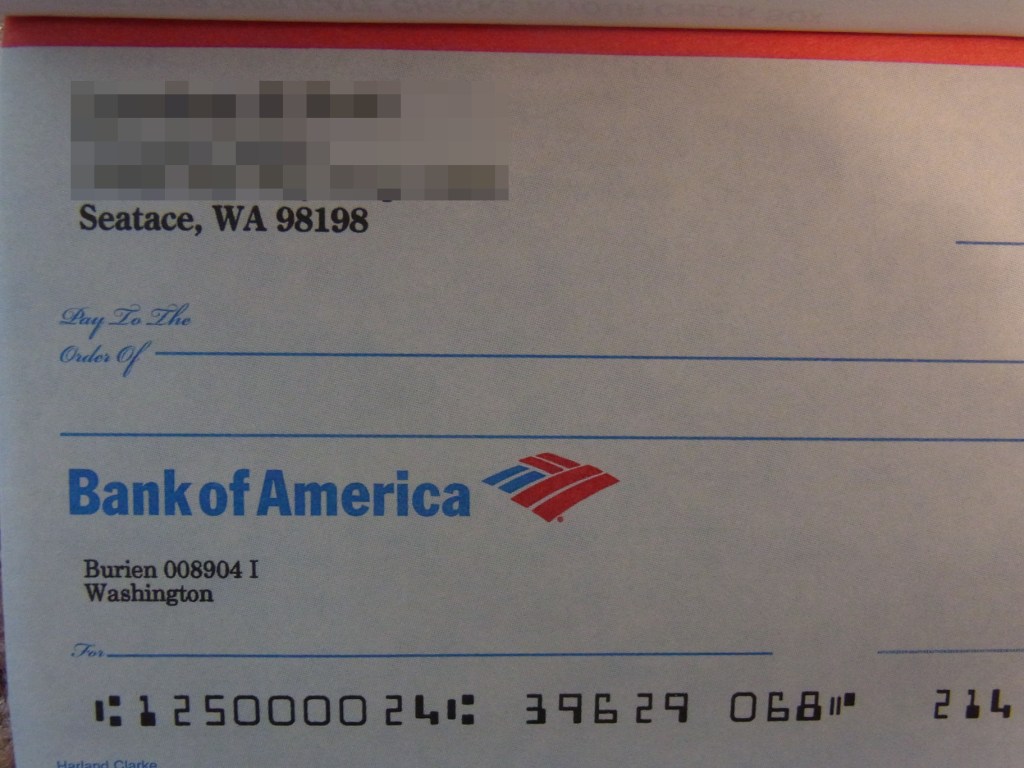 銀行のチェックブックの間違い。クリックして拡大してもらわないと多分見えませんが、SeaTacの筈が、Seataceに・・・Seataceってどこよ?