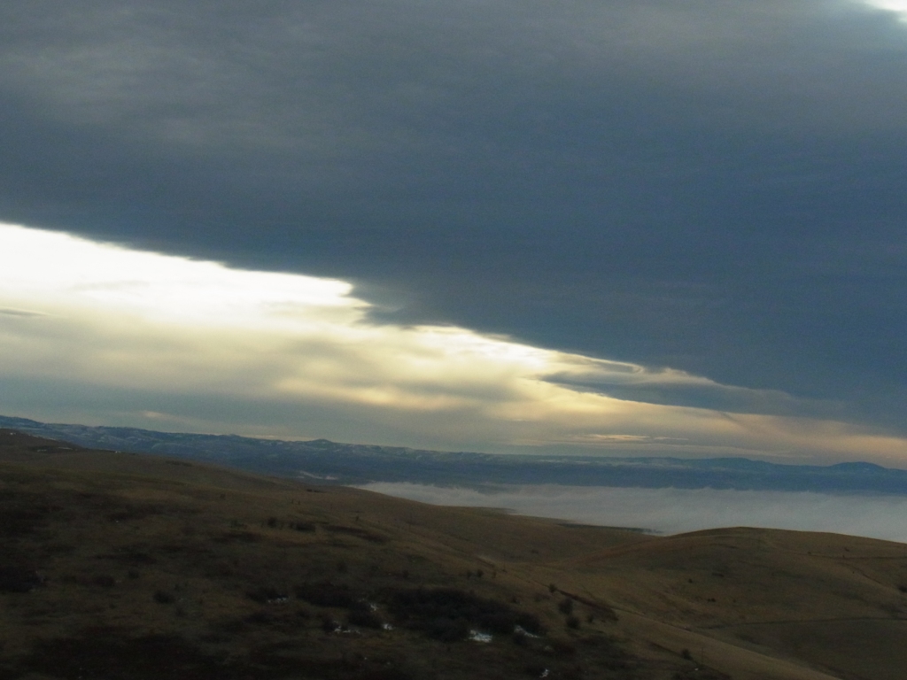 連れ合いJの実家があるLa Grandeまでの道のりは、珍しく雪がなかったものの、義父の言うとおり、East Oregonの天気は読めません。途中、30分程、10m先くらいまでしか視界が利かないほどの濃霧に襲われました。