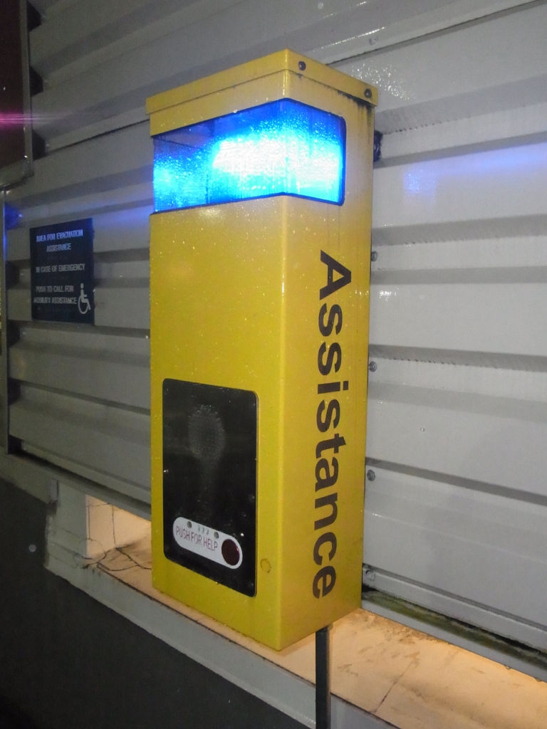 ボックスの下部に、赤いボタンがあって、押すと、サイレンが鳴り響き、警備室から警備員がかけつけてくれるとのこと。