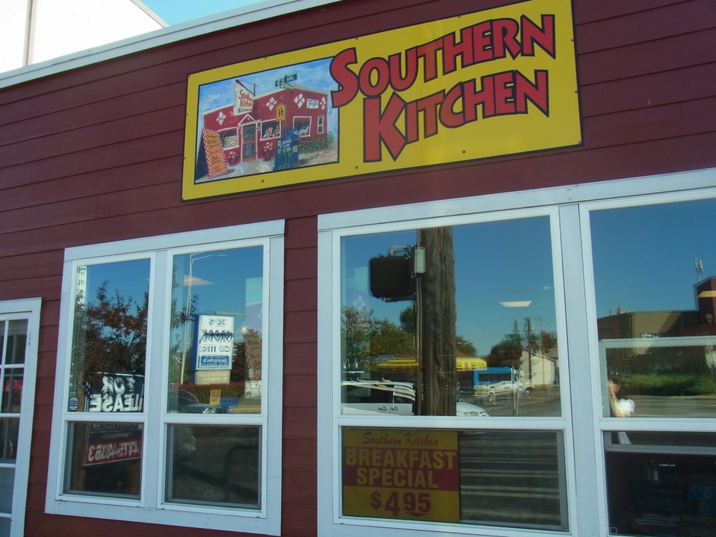 ワシントン州は、南下するほど黒人・ヒスパニック率が高まるのですが、どちらかというと白人が多いので、ソウルフード(南部料理)を出すレストランって凄く少ないです。でも、このSouthern Kitchenは、わざわざシアトルから食べに来る人もいる(シアトルからタコマまでは車で40~50分かかります)と聞いて、寄ってみました。