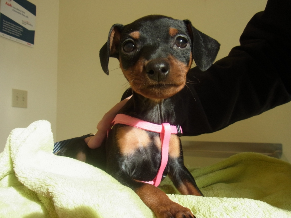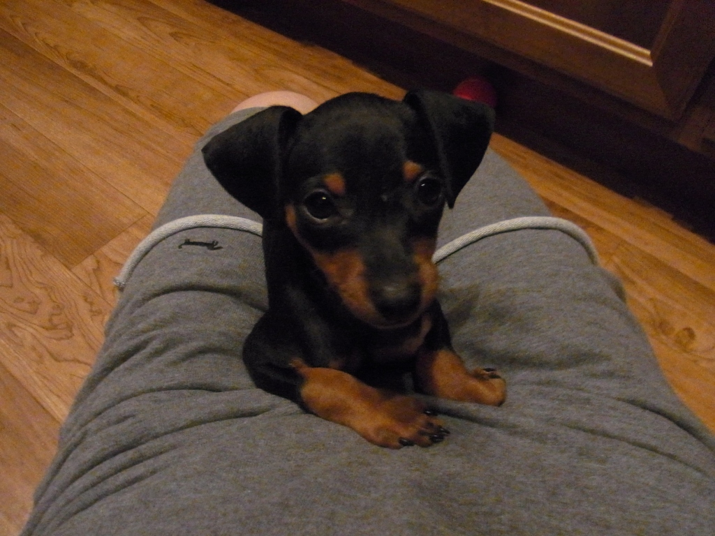 2カ月ちょっとのミニチュア・ピンシャーです。人間の年齢でいったら3歳くらい。