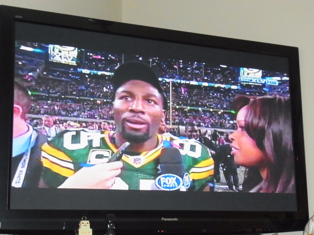 昨日、アメリカ時間で6日、年に一度の国民的大イベントであるスーパーボウルが開催されました。写真は、ヒーローインタビュー。